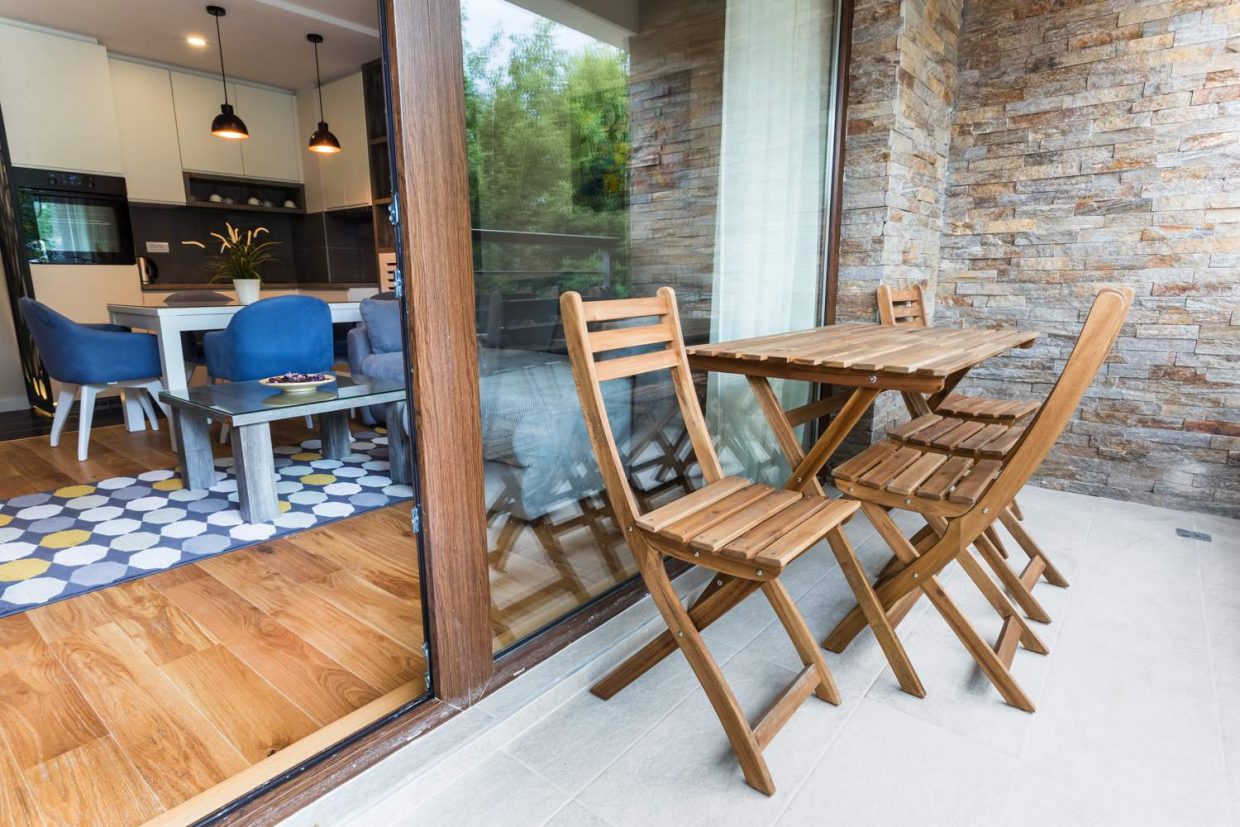 sa moderno opremljenom kuhinjom i dnevnim boravkom, kupatilom i terasom.